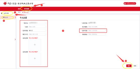 2、登录后点击[会员系统],点击[会员信息]-[资料认证],进入信息填写页面。