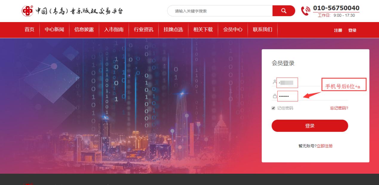 原音创宝老用户(有持仓或有资金余额)在登录[中国(青岛)音乐版权交易平台]官网时,可使用默认登录密码直接登录,具体操作步骤情况如下: