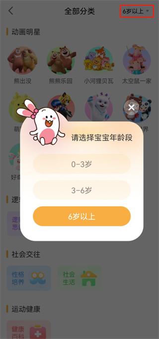 2、进入后,先选择宝宝的年龄,然后系统会根据年龄推荐适合孩子的音频视频。