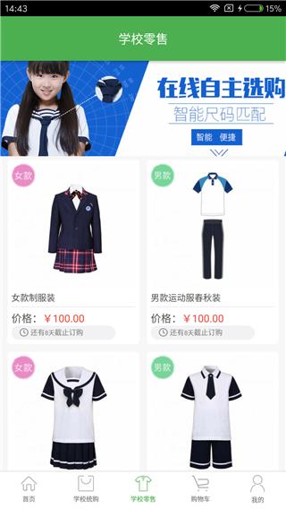 进入首页选择多彩校服,可以查看全部款式的学生校服