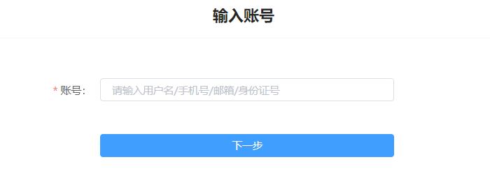 2、输入账号、绑定的手机号、邮箱、身份证号(四选一)选择“下一步”;