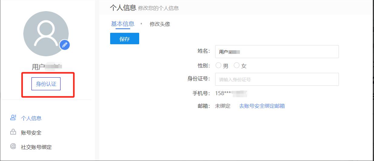 用户登录后,在“个人中心”页面,选择“身份认证”;