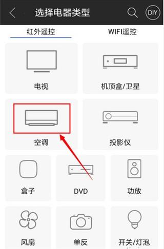 1) 打开添加遥控器,选择家电类型:空调;空调品牌:美的;