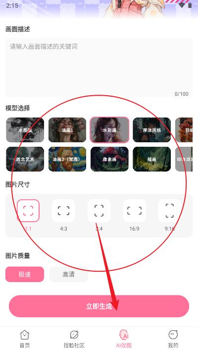3、选择你的图片模型和比例继续捏脸