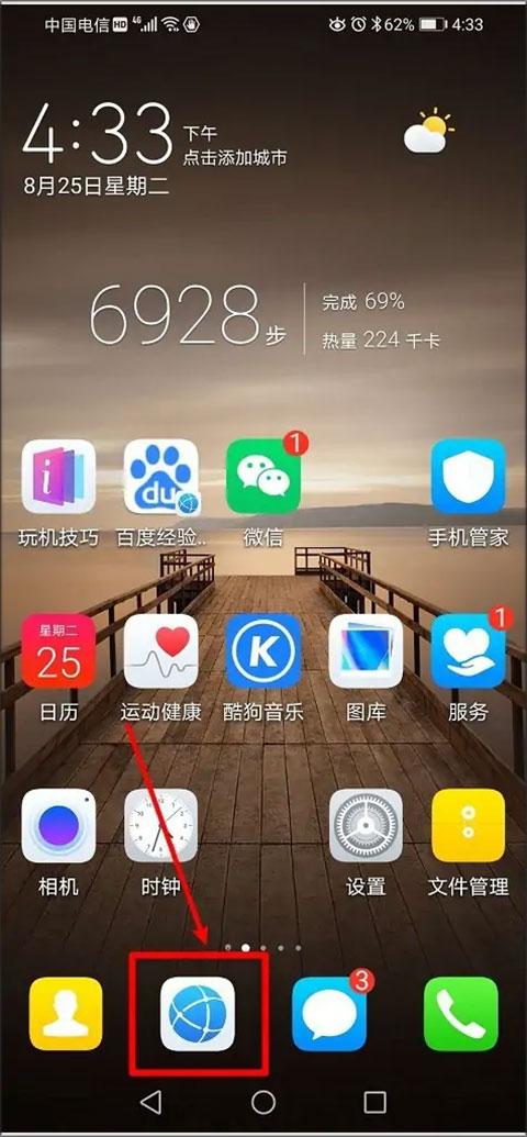1、解锁手机,找到“浏览器”图标,点击进入;