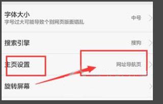 3、这里就会看到一个主页设置的选项栏,点击打开右侧的网址导航页;
