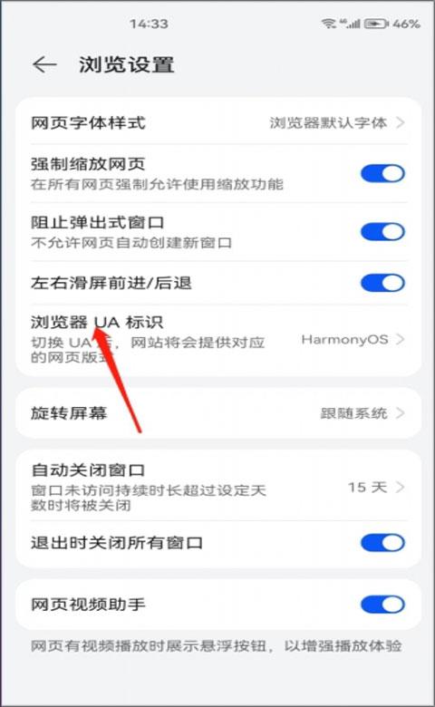 请通过浏览器右下角我的/小黑点>设置>浏览设置/网页设置>浏览器UA标识进行切换。