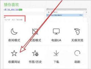 2、在打开的浏览器更多菜单中,我们点击“收藏网址”的图标。
