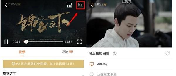 除了以上投屏方式外,针对于支持DLNA协议的音视频App,还可以利用App里面专属的投屏功能进行操作。打开支持DLNA协议的音视频App,选择自己想要观看的影片或收听的歌曲,点击右上角的[TV]按钮,选择LetsView开头的智能电视设备名称,然后你想看的视频、想听的歌曲就可以直接在电视上播放啦!