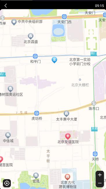 打开右侧主图功能按钮,右侧包含更多功能入口:如城市切换、离线地图、列车查询、周边查询等。