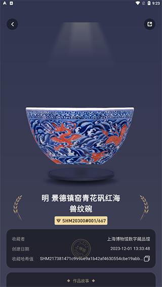 5、往下滑动屏幕还能看到该数字藏品的接受,因为这款app的藏品都是基于上海博物馆内的实物研发的,所以每一款都有它的独特历史故事。