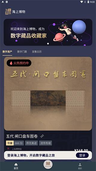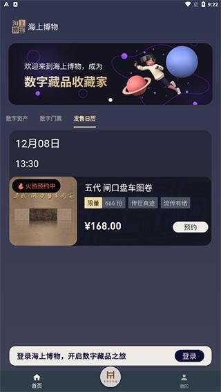 1、下载并打开海上博物app即可看到首页正在预约出售的藏品