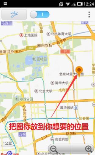 5、通过对地图的放大缩小、左右滑动,用手指点击你想要定位的地点,