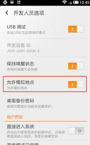 3、如果手机没有root权限时,请打开手机的系统设置,选择「开发人员选项」,将「允许模拟地点」设置为开启状态,