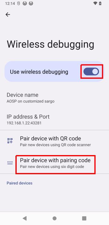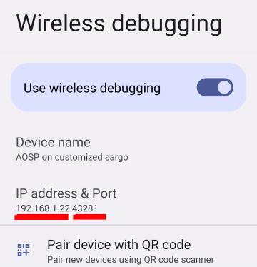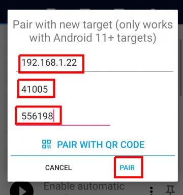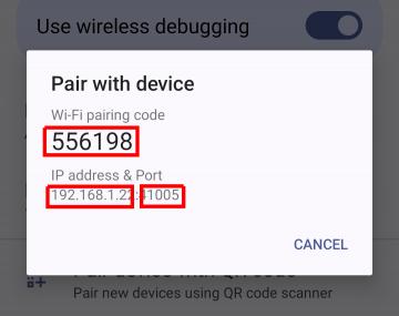 请注意,有一个特定端口仅用于配对(与用于 ADB 连接的端口不同)