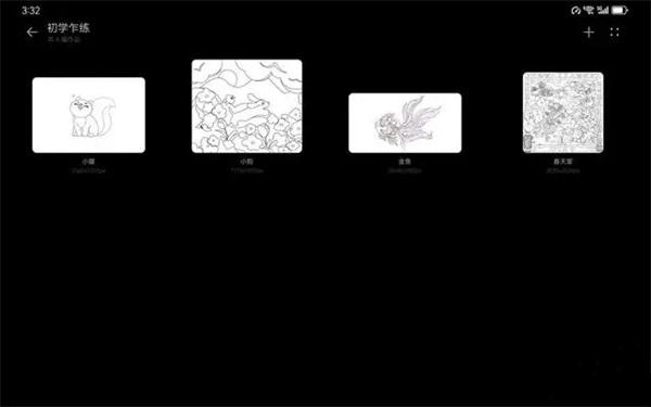 该软件还为绘画初学者提供了“初学乍练”素材包,该素材包内含四种绘画模板,方便新手用户上手学习绘画技巧。