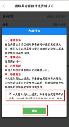 下载手机APP“内蒙古人社”→资格认证→勾选下面“本人已知悉以上规定,并承诺... ...”→点击“继续”→录入“身份证号、姓名、手机号码”,选择“认证类别”→按手机上方提示作出相应动作→显示“认证成功”即可。