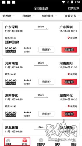 2、注册登入后进入软件首页,在找货功能里可以选择自己喜欢的路线寻找货源;