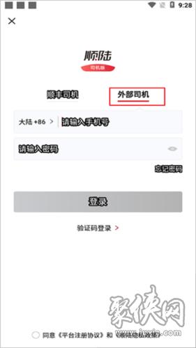 1、在本网站下载安装软件到手机上,进入软件注册登入账号信息不是顺丰员工选择外部司机注册;