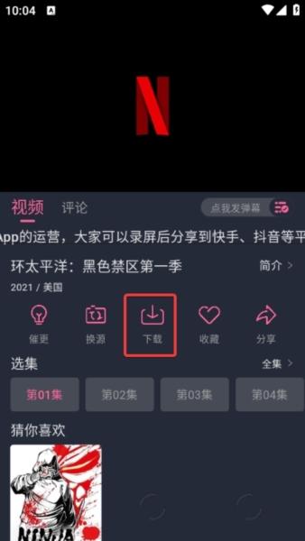 2、在播放页面,我们就可以看到下载的功能。