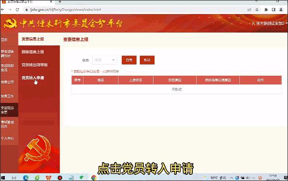 然后在内侧的列表内找到党员转入申请点击它。
