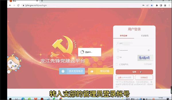 首先需要转入支部的管理员登录自己的账号。