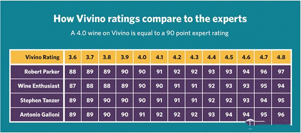 Vivino经过长期的数据累计,和很多权威评分换算大致如下: