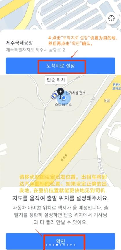 4、点击“도착지로 설정”设置好目的地,然后点击“확인”确认。