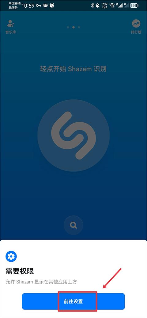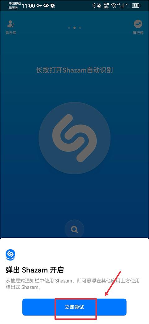 4、开启后返回app后,会弹出Shazam开启,点击立即尝试