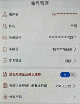 通过注册验证后,请在APP的"账号管理"界面对"是否办理企业登记注册"选项进行设置。当您将选项置为“是”、并在"有效期"范围内时,登记注册机关认为:您表达了办理企业登记注册业务的真实意思,将继续为您办理企业登记注册业务。否则,企业登记业务将不能办理。需要特别说明的是:请您在办理完企业登记注册业务后,尽可能及时将选项置为"否",进一步降低被冒用身份的风险。下次办理业务前,随时登录账号进行设置即可。