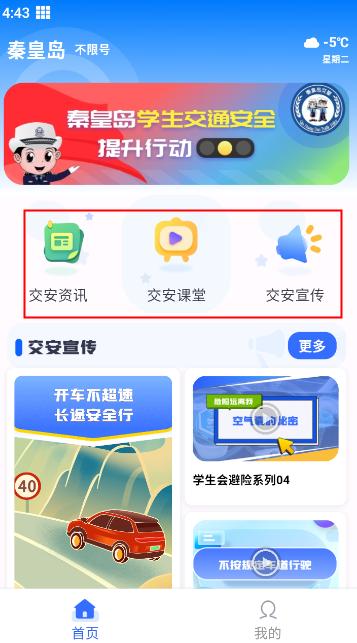 2、登入后,在首页能看到有交安资讯、交安课堂、交安宣传三大功能。