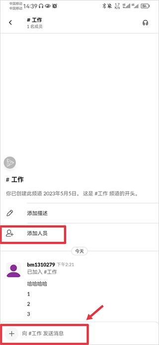 4、成功创建后点击添加人员邀请你的团队成员,之后就可以在群聊中进行聊天、发送文件了