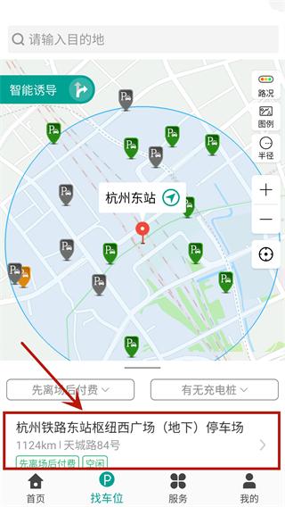 2、在找车位栏可以查看最近的停车场,同时还可以在上方直接输入目的地,自动为你匹配;