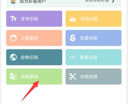 在主菜单找到“拍照翻译”的选项,点击进入。