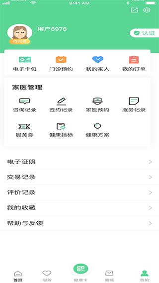 扫描电子健康卡,实现市民与家庭医生在线签约,定制签约服务包。在社区卫生服务中心自助采集健康体征,完善个人电子健康档案。可进行远程诊断申请、绿色通道转诊。