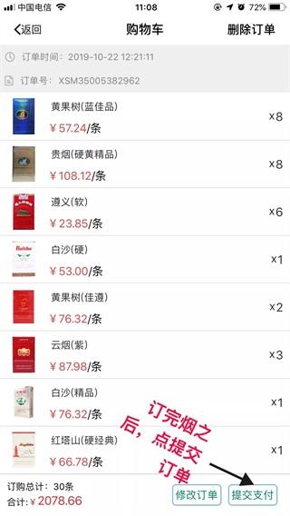 第六步:订完烟之后,点“提交支付”。