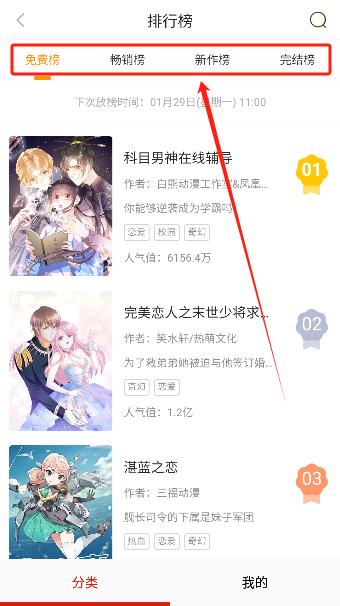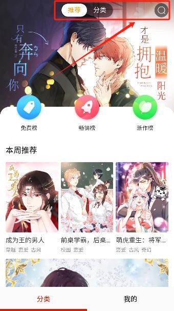 1、主页上选择感兴趣的漫画分类;