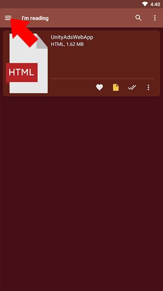 1、下载并打开eReader,来到下方界面后会自动加载设备中的可阅读文件,想要自己导入文件的话,先点击左上方的三条杠按钮