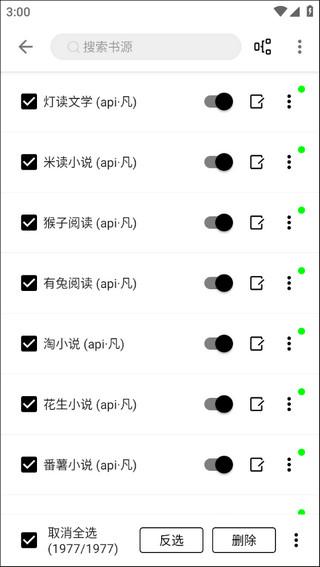 8、现在勾选全部书源,点击“启用所选”即可