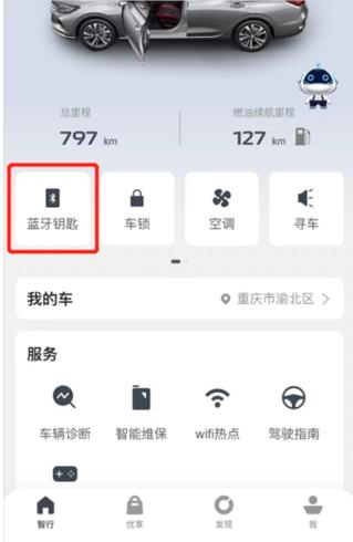 首先在软件的智行页面中点击【蓝牙钥匙】进行下载蓝牙钥匙