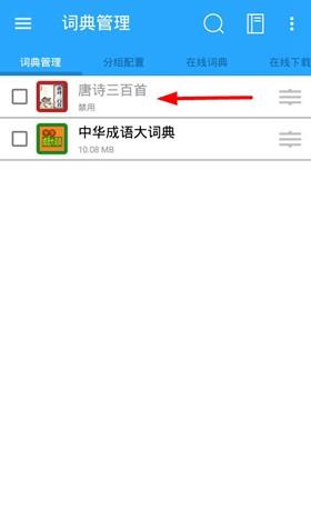 5.词典下载完成之后就可以使用了,但是你如果有多次词典的话,最后先来到词典管理,然后长按将其禁用,不然在使用的时候会出现很多的内容。