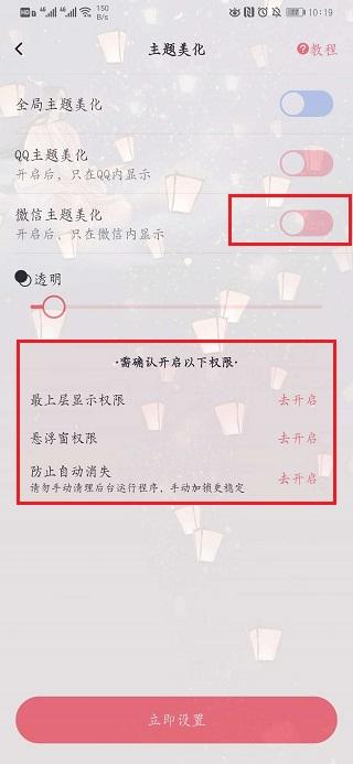 4、点击一张喜欢的图片,将微信主题美化开关打开