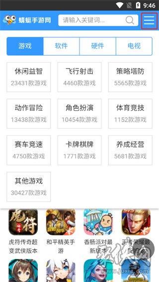 2、点击右上角的三条横线,会有很多的分类,用户可以按照游戏分类寻找自己想玩的游戏;