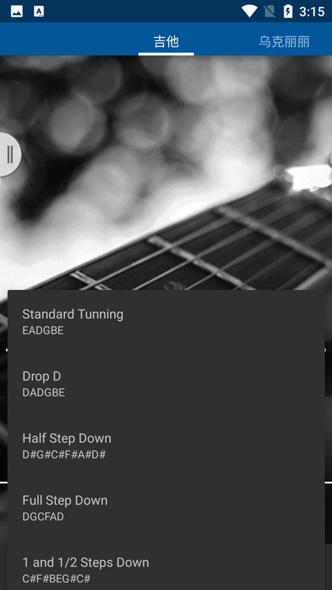 2、乐器调音,模拟了吉他、乌克丽丽、四弦五弦六弦贝斯、小提琴等等乐器,可以为他们进行调音适试音。