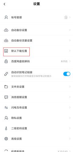 2、在“设置”页面中,点击的“默认下载位置”按钮;