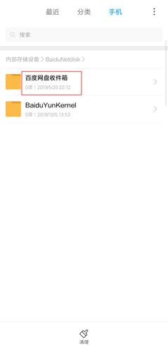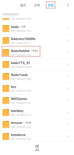 2、接下来在手机的屏幕上进行页面下拉,然后点击【baidunetdisk】文件夹。