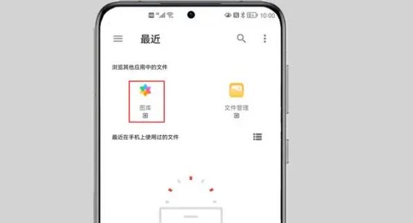 4、在“最近”功能窗口点击“图库”或“文件管理”。在这里我们选择“图库”。