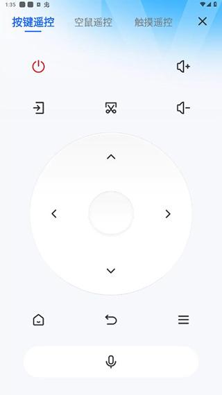 用户点击屏幕下方中间的图标,即可进入遥控页面,用户可以在按键、空鼠、触摸三个遥控模式中选择一个自己喜欢的进行使用。
