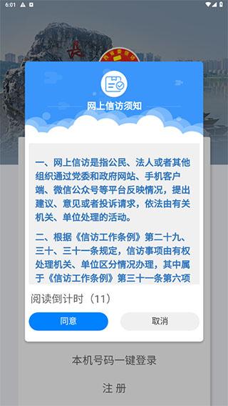 2、阅读信访须知并勾选同意,有15强制阅读时间,请务必仔细阅读