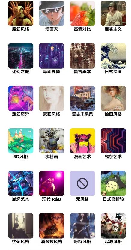 3、选择一种艺术风格!-无论你是在寻找一幅色彩鲜艳的油画,还是一些更黑暗、更反乌托邦的作品,AI绘图都会为你提供一系列精选的风格。